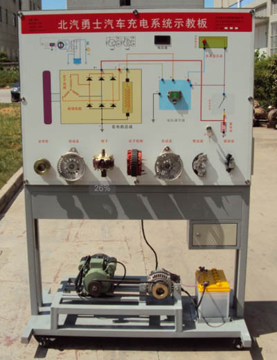 設(shè)備由勇士原車(chē)發(fā)電機(jī),蓄電池、電壓表、電流表、大功率負(fù)載、充電指示燈、空氣開(kāi)關(guān)、帶安全保險(xiǎn)的電源輸入接口、電源線(xiàn)、考核系統(tǒng)、電動(dòng)機(jī)及所有充電系統(tǒng)相關(guān)部件組成,在設(shè)備的中間部位,為完整的發(fā)電機(jī)分解部件。設(shè)備的下部為蓄電池、發(fā)電機(jī)、電動(dòng)機(jī)。上部為高清噴繪彩色原理圖面板、故障設(shè)置及故障排除系統(tǒng)、控制面板、可移動(dòng)臺(tái)架。配套設(shè)備使用說(shuō)明,實(shí)訓(xùn)指導(dǎo)資料、產(chǎn)品合格證、保修卡。