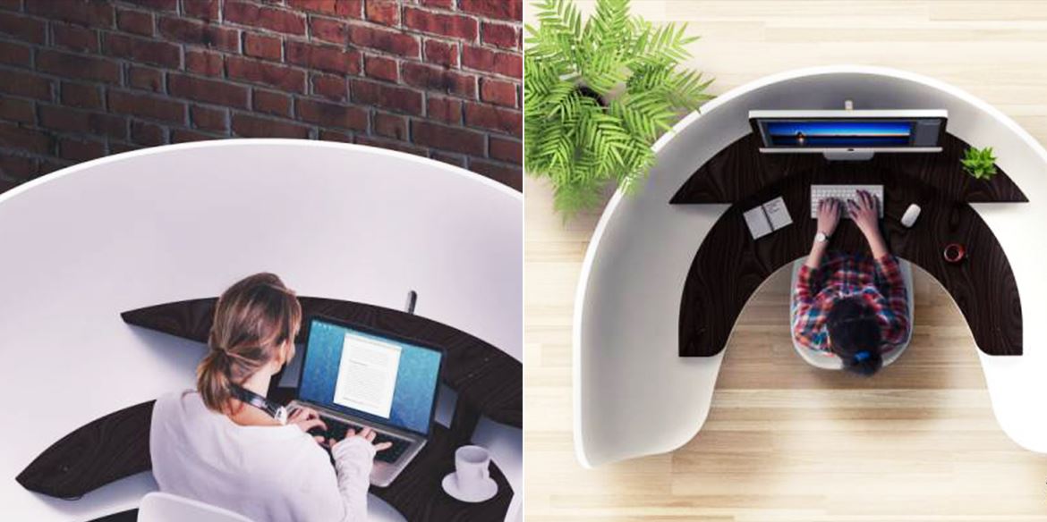 事實(shí)證明,公共辦公場(chǎng)所(圖書館、咖啡廳等)并不是那么的完美無缺。盡管它美觀、大方、敞亮,但辦公時(shí)難免會(huì)因?yàn)橥饨缫蛩兀ㄩ_門、他人電話等)而分心。于是,設(shè)計(jì)師們?cè)O(shè)想:采用何種改進(jìn)能夠幫助工作人員在公共場(chǎng)所專心辦公呢?可能你會(huì)想,他們一定會(huì)設(shè)計(jì)出一些非常高科技的產(chǎn)品,用高科技來屏蔽外界干擾,以達(dá)到預(yù)期的效果。然而事實(shí)并非如此,他們的做法很簡(jiǎn)單,僅僅是通過縮減桌面面積來減少放置雜物的空間,同時(shí)加高桌子周圍的“墻”高度來減少外界對(duì)于用戶視覺的干擾。